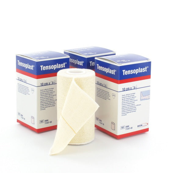 • Venda elástica adhesiva hecha de fibras sintéticas y algodón para dar soporte y compresión firme.